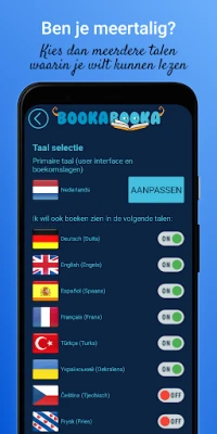 BookaBooka piedāvā nepārspējamu elastību lasīšanas pieredzē. Vecāki var paši lasīt priekšā, radot siltus un neaizmirstamus kopīgu brīžu mirkļus, vai arī izvēlēties no dažādām profesionālām ierunām, ļaujot BookaBooka stāstniekiem atdzīvināt katru lapu. Daudzas grāmatas ir pieejamas vairākās valodās, padarot BookaBooka par ideālu rīku daudzvalodu ģimenēm vai tiem, kas vēlas iepazīt jaunu valodu jautrā un saistošā veidā. Šī funkcija atver durvis uz plašāku pasaules izpratni, bagātinot vārdu krājumu un kultūras izpratni jau no mazotnes.