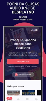 Ar Knjigapriča jūsu iemīļotie stāsti paliek ar jums uz visiem laikiem. Iegādājieties audiogrāmatu vienreiz, un tā būs pastāvīgi pieejama jūsu kontā, sniedzot neierobežotu baudījumu. Lai palīdzētu jums atklāt jaunus autorus un aizraujošus stāstus, mūsu efektīvā meklēšanas funkcija ļauj ātri atrast grāmatas pēc autora vai nosaukuma. Un, lai sniegtu jums iespēju izmēģināt Knjigapriča piedāvātās priekšrocības, pirmās mēnesis ar audiogrāmatām ir pieejams bez maksas. Knjigapriča ir jūsu ideālais sabiedrotais gan ceļojumos, gan atpūšoties, gan veicot ikdienas aktivitātes, piepildot jūsu brīžus ar iedvesmojošiem stāstiem un zināšanām.