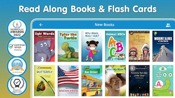 Reading App for Kids Books – izglītojoša lietotne 3-12 gadus veciem bērniem. Atbalsta lasītprasmi ar 5000+ nolasītām grāmatām, interaktīvām angļu vārdu kartītēm un jautrām spēlēm. Ideāls resurss vecākiem un pedagogiem, veidojot vārdu krājumu, izpratni un mīlestību pret lasīšanu.